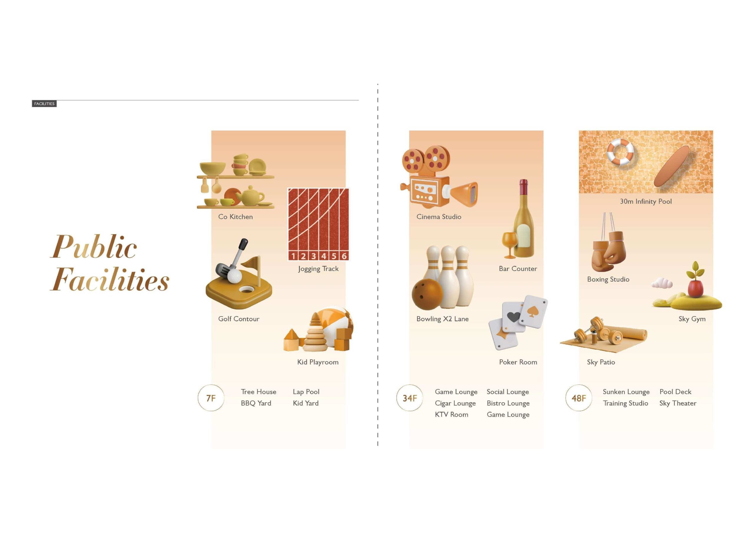 34階にボーリング、ゲームラウンジ、シガーラウンジ、ポーカールーム、KTV・シネマ